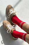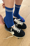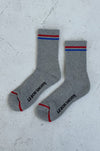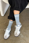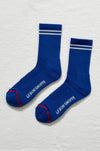 This slightly longer-than-crew sock features a contrast double stripe, mesh along the top of the foot for breathability, and elastic arch support. Durable, comfortable, and perfect for pairing with any shoe.