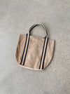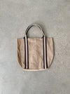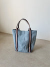 This genuine suede cowhide tote bag's flexible and spacious structure makes it ideal for everyday use, while its tricolour cotton handles add a distinctive and modern touch.