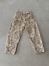 Best guess 100% cotton. All Cub clothing pieces are made from vintage fabric, therefore exact fabric type is unknown. These fabrics are dead stock material so once a size is out of stock, it likely won't be restocked. Fit may slightly differ between fabrics. Please note* Matcha is a straight leg instead of barrel leg.