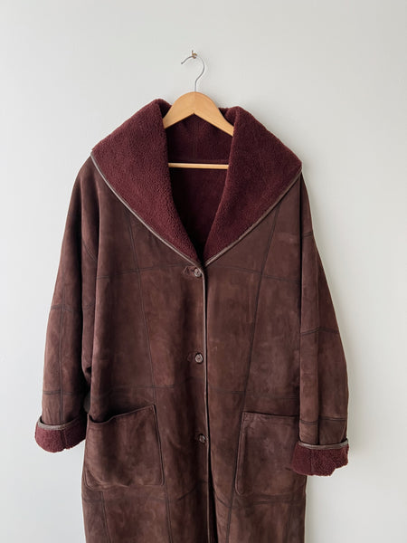 Burgundy Sherpa Suede Coat | XL