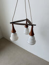 Wooden accents, opaque milk glass shades