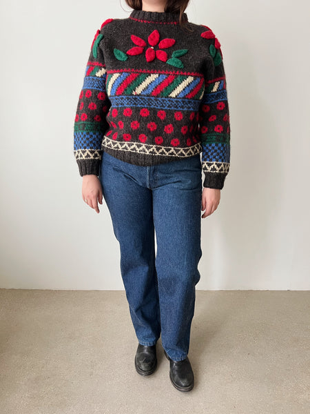 Handknit Floral Sweater | L